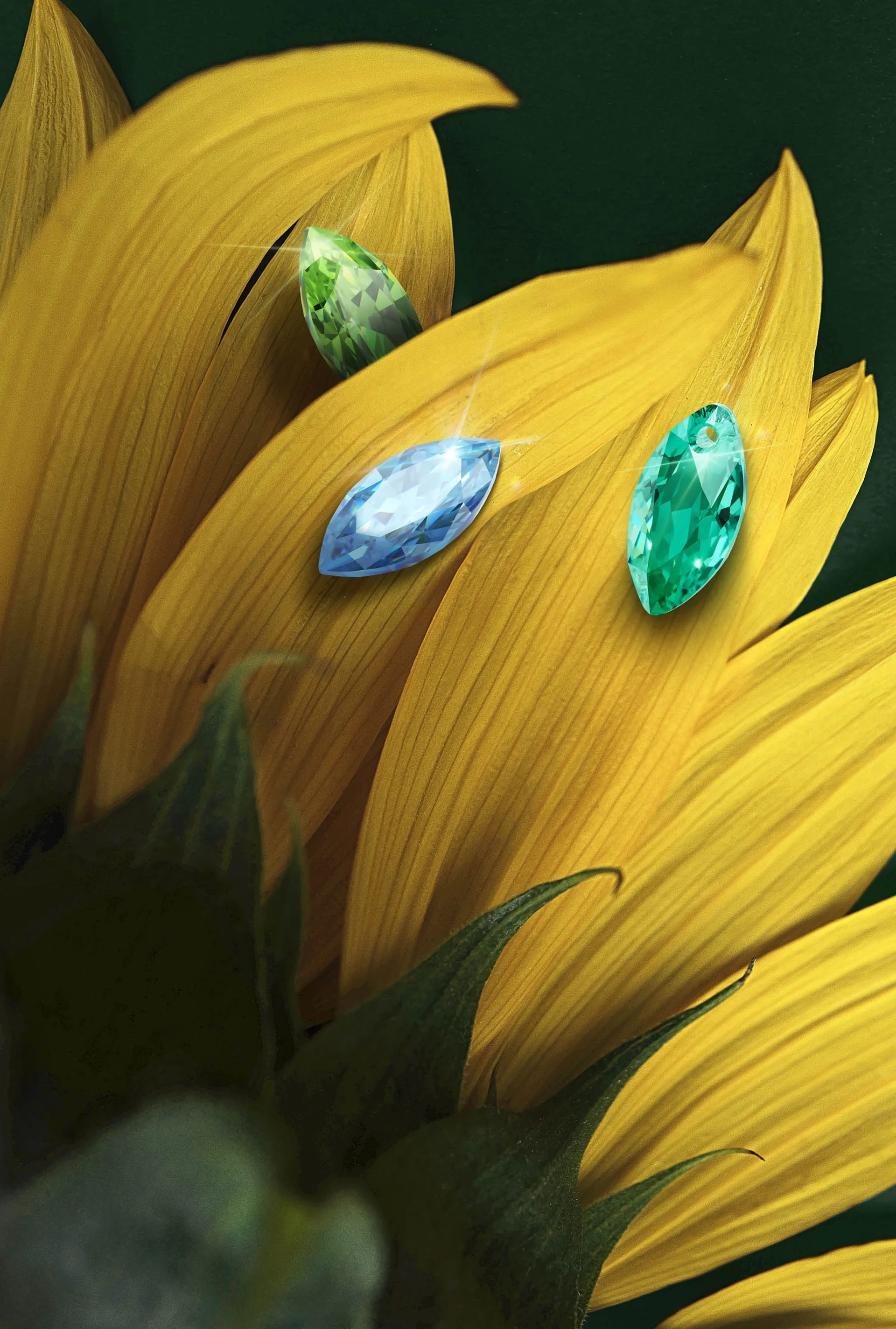 Rain-soaked Fern Green and new Swarovski ReCreated™ Caribbean Green pair with life-giving blues and sunny soft yellow, alongside Silk and luminescent Crystal Cream Pearl, creating a vibrant, life-affirming palette.