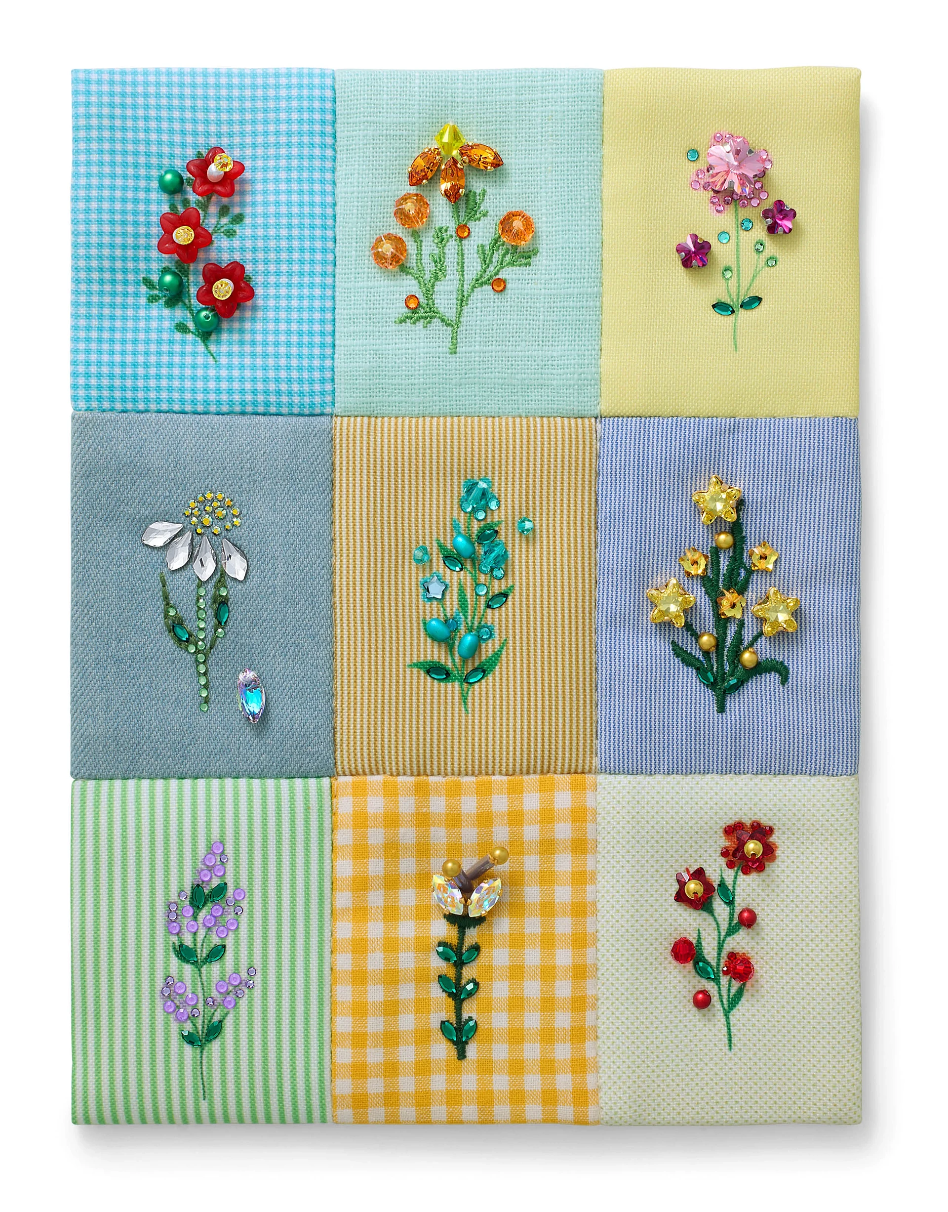 Celebrating the beauty of tradition, natural cottons, gingham, and striped shirting form a patchwork backdrop of stylish simplicity. Embroidered leaves bloom into petals of crystals, cleverly crafted from new Marquise Cut Pendants and Marquise Fancy Stones, delicate Crystal Beads, and Crystal Pearls in whimsical floral arrangements.